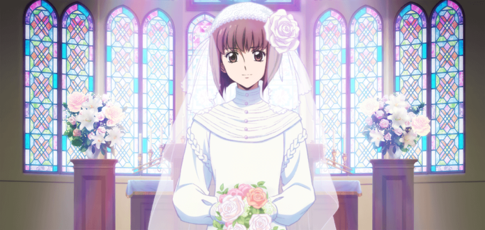 Wie für peppermint anime nicht unüblich kommt „Mademoiselle Hanamura #2: Eine Romanze in Tokyo“ in einer Standard Amaray-Hülle daher, die in einem nach oben und unten hin geöffneten Pappschuber, auch O-Card genannt, steckt. Leider ist dieser Schuber nicht besonders stabil, weshalb er sehr vorsichtig zu behandeln ist, um ihn nicht zu beschädigen. Positiv lässt sich jedoch anmerken, dass das FSK-Logo auf dem Schuber nur aufgeklebt ist und sich mit wenig Mühe und ohne Rückstände entfernen lässt. Auf dem Schuber, wie auch der Amaray-Hülle, ist Benio Hanamura, unsere Heldin, zu sehen, gekleidet in ihrem Hochzeitskleid. Dabei steht sie in einer Kirche und hat einen Brautstrauß in der Hand.