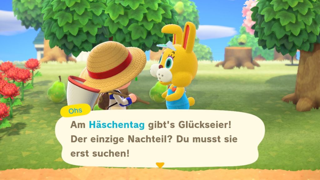 Ehrlich gesagt war das Versprechen von Events eine spannende Ankündigung. Deswegen habe ich mit dem Verfassen dieses Reviews auch absichtlich etwas gewartet, um meine Erlebnisse aus dem Osterevent darstellen zu können. Animal Crossing lebt von Events und diese bringen jedes Mal etwas Abwechslung ins Spiel, egal ob es das Auftauchen von bestimmten Personen auf der Insel ist oder verschiedene Turniere. Dadurch wird das Spiel erst richtig interessant.