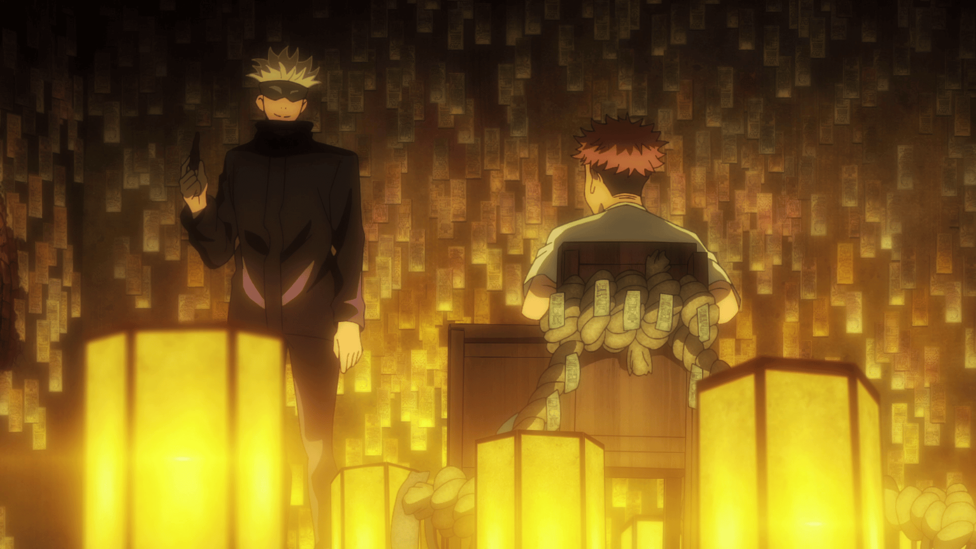 Nun springt man zur ersten Szene des Animes zurück, wo Yuji Itadori gefesselt auf einem Stuhl vorzufinden ist. Umzingelt von unzähligen Schutzsiegel gibt Gojo bekannt, dass er hingerichtet werden wird. Doch keine Sorge, die Hinrichtung konnte er auf Bewährung aussetzen, da er vorher erst alle 20 Finger von Sukuna finden und essen soll. Sechs befinden sich bereits im Besitz der Jujuzisten. Die Finger von Sukuna sind so mächtig, dass er sie nicht zerstören kann. Sie werden sogar Tag für Tag stärker. Nun kommt Yuji ins Spiel – wenn er stirbt, stirbt auch der Fluch in ihm. Wie ist seine Entscheidung? Will er sofort sterben, oder erst dann, wenn er Sukuna in sich aufgenommen hat?