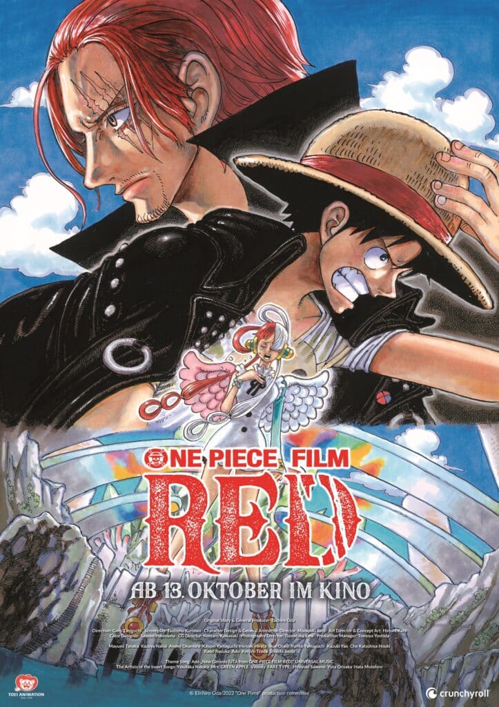 „One Piece Film Red” entstand unter der Regie von Goro Taniguchi (“Code Geass”) im Studio Toei Animation. Tsutomu Kuroiwa (“One Piece Gold”) war für das Drehbuch verantwortlich, während Serienschöpfer Eiichiro Oda als Executive Producer agierte. Der Titelsong trägt den Titel “New Era” und komponiert wurde er von Yasutaka Nakata und Sängerin Ado. Der Film feierte seine Premiere in Japan am 06. August 2022 und ist dort wahlweise auch in IMAX zu sehen sein. Bereits zehn Tage nach dem Kinostart konnte der Streifen den Titel „erfolgreichster One Piece Film aller Zeiten” für sich verbuchen, da schon zu diesem Zeitpunkt das Einspielergebnis von “One Piece Film Z”, der zuvor den Titel inne hatte, übertroffen werden konnte.