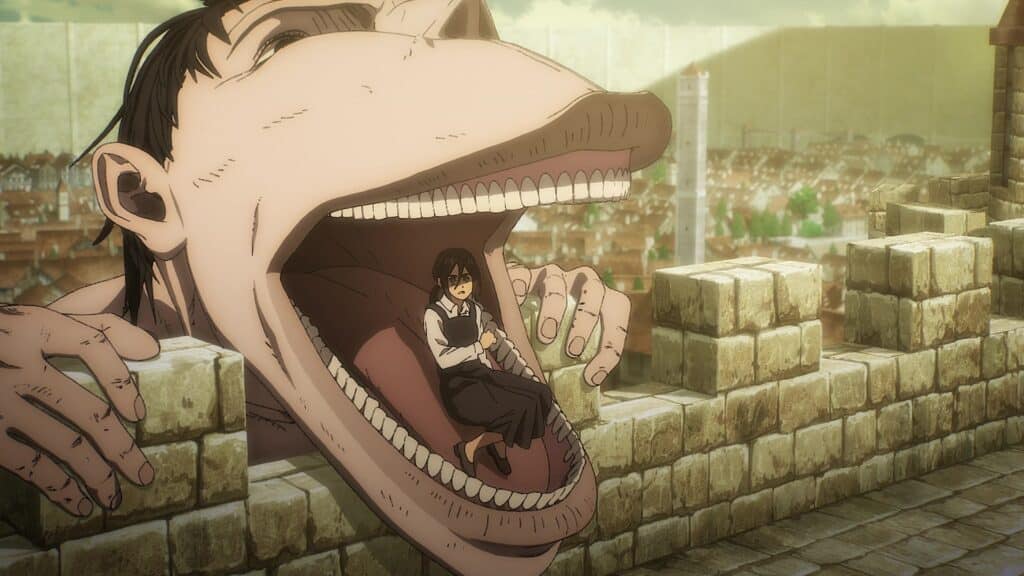 Durch die Hilfe von Mikasa und Armin, die die Angreifer inklusive des Karrentitans, der eine Antititanenwaffe montiert hat, auf der Mauer der Stadt in Schach halten, schafft es Eren, die Oberhand über Reiner und den Kiefertitanen zu gewinnen. Zeke als Tiertitan wurde durch die Waffe des Karrentitanen schwer verletzt, aber er schafft es noch seinen Schrei zu nutzen, um alle, die mit seiner Rückenmarksflüssigkeit in Kontakt kamen, in willenlose Titanen zu verwandeln, darunter auch Falco. Dieser stürzt sich daraufhin erst auf Reiner und möchte ihn fressen, was dazu führen würde, dass er dessen Kräfte erhält und seinen Willen zurück. Er lässt von Reiner jedoch ab und widmet sich dem Kiefertitanen. Eren nutzt währenddessen eine Finte, um auf den schwer verletzten Zeke zuzurennen, wird dabei jedoch von Gabi mit einem gezielten Schuss enthauptet. Bevor sein Leben endet, berührt ihn Zeke jedoch noch und so findet sich Eren in einer Art Zwischenwelt wieder, in der Ymir zuhause ist. Er offenbart dort Zeke, der ebenfalls dort ist, dass er ihren Plan gegen die Eldia nicht durchsetzen wird. Zeke hat so etwas erwartet und reißt mit ihm in die Erinnerungen des gemeinsamen Vaters, um Eren zu überzeugen, jedoch erkennt Zeke selbst, dass vieles nicht so ist, wie er es die ganze Zeit gedacht hatte.