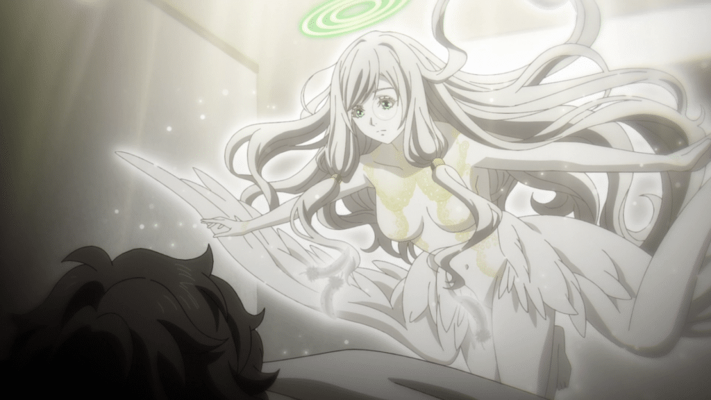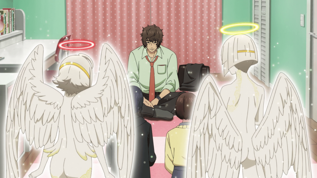 Der Engel prophezeit Mirai Kakehashi eine rosige Zukunft mit Freiheit und Liebe, doch wie soll das funktionieren? Der namenlose Engel widerspricht und demonstriert zeitgleich, was sie mit Freiheit meint – die engelsgleichen Flügel. Mit ihnen kann der Engel schneller fliegen, als das menschliche Auge sehen kann. Und für die Liebe existiert der sogenannte Engelspfeil. Ob Mann oder Frau – wer von diesem roten Pfeil getroffen wird, wird sich unsterblich in den Absender verlieben. Nun liegt die Wahl bei Mirai Kakehashi – Entscheidet er sich für die Flügel oder doch die Pfeile? Total unsicher sagt er, dass er beides nehmen würde, um sich später zu entscheiden. Dass der Engel es absegnet, damit konnte er jedoch nicht rechnen. Eher es sich versehen kann, wird er mit zwei roten Reifen abgeschossen, wodurch er nun selber die angesprochenen Kräfte erhält – ob er es will, oder nicht. Er braucht sich über die Ringe keine Sorgen machen, denn es ist für andere Menschen nicht sichtbar. Wobei, das stimmt nicht ganz, denn für andere Menschen mit einem Engel ist es das. Also gibt es noch mehr von der Sorte, doch was wollen die Engel bezwecken? Ganz einfach – die Suche nach dem nächsten Gott.