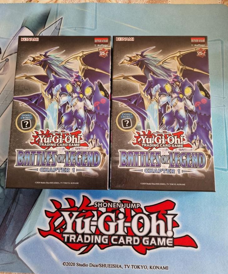 Das zweite Set, was Konami uns zugesendet hat, ist „Battles of Legends – Chapter 1“. In jeder Box sind einige Booster drin, sowie ein Würfel mit Motiven verschiedener Archetypen z.B. Grosalamander. Die „Battles of Legends“ Sets weisen oft Reprints von älteren Karten auf und haben Karten, die auch im Anime eine Rolle gespielt haben, enthalten. In diesem Fall passt das Set auch gut zu „Phantom Nightmare“, da beispielsweise das Covermonster des zuvor beschriebenen Sets, Yubel, bei diesem Set enthalten sein kann. Vorallem für Spieler:innen älterer Formate von Yu-Gi-Oh!, wie beispielsweise dem Edison-Format, sind in diesem Set viele gute Karten enthalten, die für Decks aus diesem Format interessant sein können. Das neueste Set ist eine Zusammenfassung der ersten „Battles of Legends“ Sets, daher sind dort Karten enthalten wie Nummer 39 Utopia in der Nummernversion.