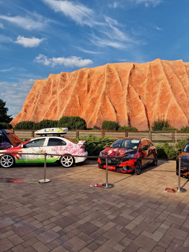 Das Angebot der Waren war wie jedes Jahr weit gefächert und üppig. Kuscheltiere, Figuren, Sammelkarten, Mangas, Blu-Rays, japanische Süßigkeiten uvm., es war für jeden was dabei. Die Bring&Buy Ecke wurde dieses Jahr in die Caligarihalle gelegt, wo die weiteren privaten KünstlerInnen untergebracht waren, dafür war in der Metropolishalle die Möglichkeit, sich vor Ort Anime Tattoos stechen zu lassen, was nicht wenige BesucherInnen in Anspruch nahmen. Nach einem Spaziergang über das Gelände des Filmparks, um sich einen Überblick zu verschaffen, ging es noch kurz in die Gaming-Area, um sich für das One Piece Sammelkartenturnier am Sonntag anzumelden. Die Anime-Disco, auf der wir bisher jedes Jahr waren, fiel dieses Jahr leider für uns aus. Zwei anstrengende heiße Tage standen uns bevor und mit Nachwuchs ist es auch nicht so einfach, da noch hinzugehen.