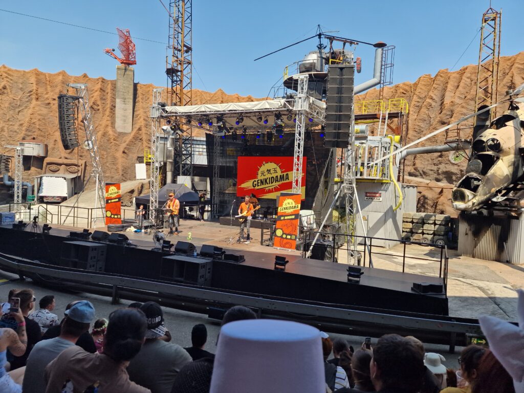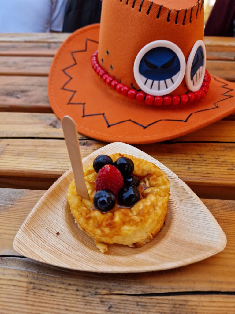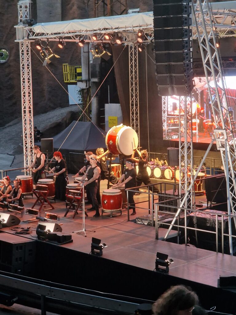 Am Messesamstag wurde es heiß, richtig heiß. Bis zu 32°C verkündete das Thermometer an diesem Tag. Dafür hat Redakteur Frank sich das passende Cosplay von Admiral Borsalino Kizaru aus One Piece ausgesucht, was neben dem Marinemantel noch zwei langärmlige Hemden beinhaltet, sodass er definitiv nicht frieren sollte. Passend dazu ging der Nachwuchs als Monkey D. Ruffy. Neben zwei Interviews (lasst euch überraschen!), die wir an dem Wochenende mit japanischen Ehrengästen geführt haben, war das Programm des Wochenendes sehr vielseitig. Am Samstag gehörte auf jeden Fall das Konzert von MADKID dazu, die die Vulkanbühne gerockt haben sowie die Weltpremiere der ersten Folge des Animes „I’ll Become a Villainess Who Goes Down in History“ von MAHO FILM. Beeindruckend war zudem das Feuerwerk aus der Vulkanarena am Samstag Abend, was auf eine interessante Vorführung von japanischer Trommelkunst durch Iki Iki Taiko folgte. Zwischendurch wurde auf der Hauptstraße, wo viele asiatische Spiele, Imbissbuden und Getränkeläden aufgestellt waren, immer mal wieder was gegessen, gespielt oder getrunken. Viel Bubbletea brachte uns durch die sengend heiße Mittagshitze. Kulinarisch wurde viel geboten. Neben klassischen Speisen wie Bratwurst oder Pommes konnte man koreanisches Streetfood, Ramen, japanische Käseküchlein, Takoyaki, Soba, Sushi und viele weitere Speisen, vorallem aus dem asiatischen Raum, zu sich nehmen.