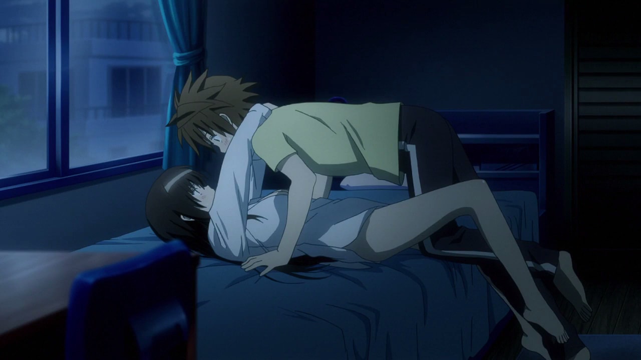 Da To Love-Ru – Darkness zum Genre der Ecchi-Komödien zählt und dieses immer wieder mit Erotik und Humor spielt, bekommt man als Zuschauer logischerweise viele solcher Szenen zu sehen. Das geht damit los, dass Rito eine Treppe herunterfällt und im Zuge dieser Szene den Slip einer Mitschülerin auszieht. Das kommt einem extrem bekannt vor, weil es wohl schon einmal in der Serie passiert ist. Der Humor und die Erotik bei Animes wie diesem sind halt immer wieder auf bestimmte Szenen beschränkt. Dazu gehört beispielsweise auch das zufällige Betreten des Raumes, in dem sich gerade nackte Mädels aufhalten. Davon abgesehen bietet die Serie natürlich auch viele sexuelle Anspielungen, obwohl man sich damit in den ersten vier Episoden noch etwas zurückhält.
