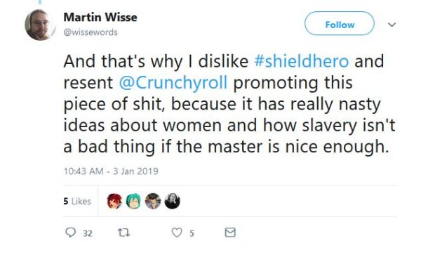 In dieser ganzen Kontroverse kommen vor allem die Redakteure der Nachrichtenseiten ,,Anime News Network“ und „S1e1“mit ihren Reviews ins Kreuzfeuer. Demnach behaupten sowohl Nick Creamer (ANN) als auch Jessi Silver (S1e1), dass eine vorgetäuschte Vergewaltigung nicht im realen Leben passieren könnte. Denn in einem Live-Tweet behauptete ersterer, dass die ,,ganze Handlung auf einer falschen Vergewaltigung beruht, die jeder sofort glaubt, etwas, das im wirklichen Leben praktisch nie passiert und das nur eine Epidemie in den Köpfen paranoider Misogynen ist.“