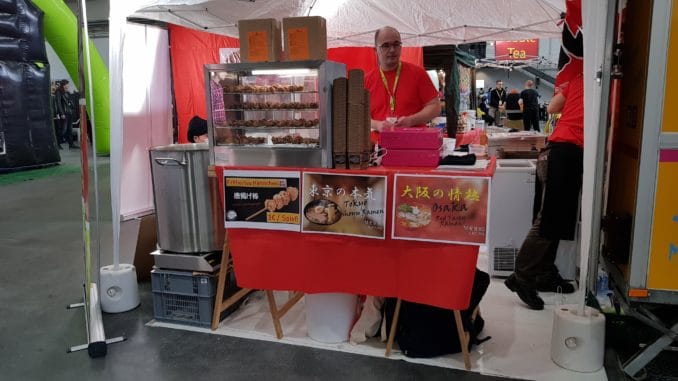 Zudem gab es einen Bereich dort, der mir persönlich am besten gefallen hat: Der Food-Bereich. Dort gab es viele verschiedene japanische Spezialitäten zu einem angemessenen Preis. Der BubbleTea Laden Sphere Boy aus Düsseldorf hat dort sogar seinen BubbleTea verkauft. Was wir dort allerdings am besten fanden, war ein Stand, an dem man Karaage am Spieß kaufen konnte. Das waren wohl die leckersten Karaage, die ich jemals gegessen habe.