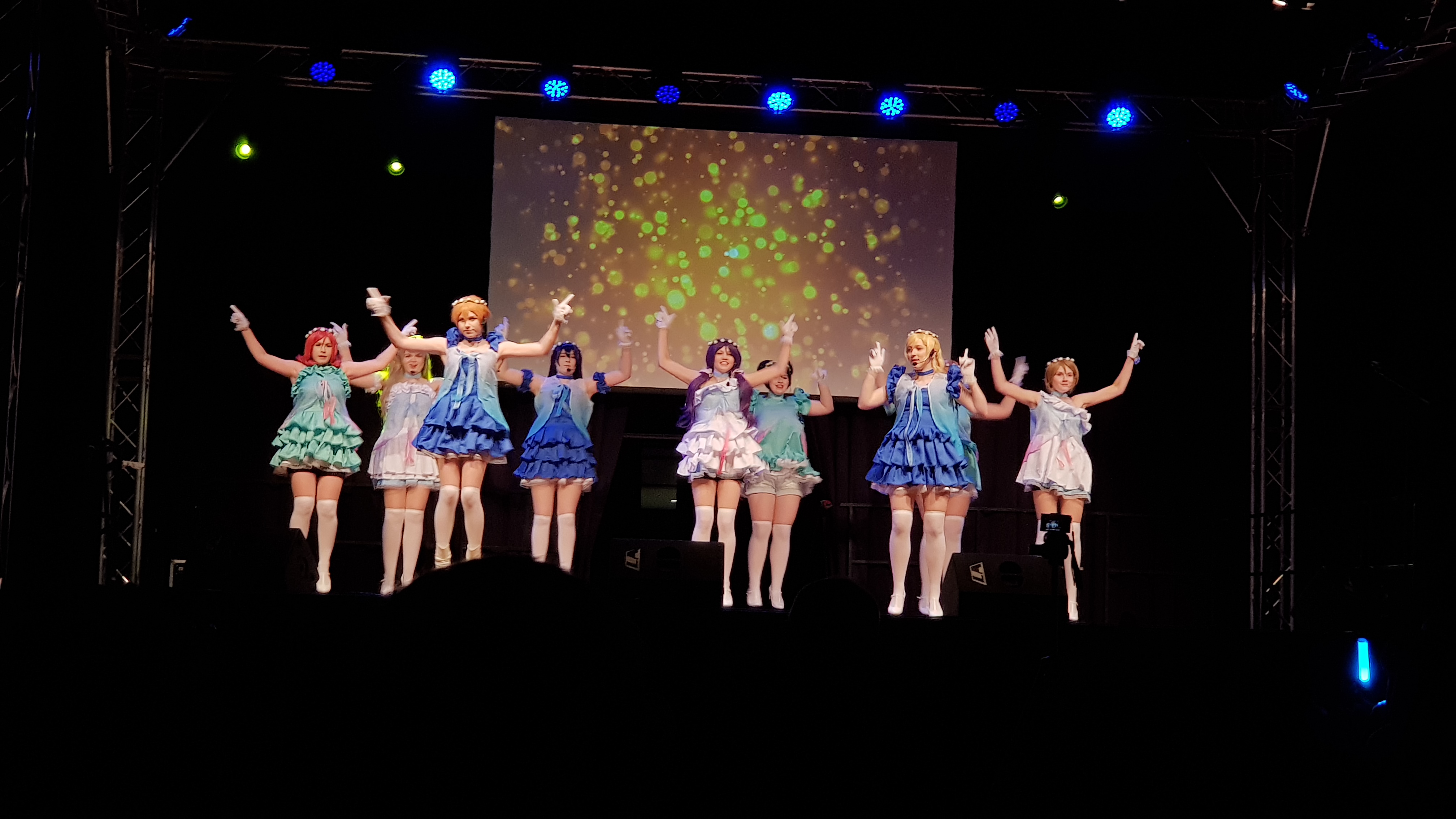 Unser Highlight war das Bühnenprogramm in der großen Halle. Doch zunächst war es echt schwierig diese große Halle zu finden, da jeder der freiwilligen Helfer uns etwas anderes mitteilte. Letztendlich haben wir den Weg aber doch gefunden. Dort gab es den ganzen Tag ein buntes Programm. Von Theaterstücken bis hin zu Konzerten war hier alles dabei. Auch ein Cosplaywettbewerb fand dort statt.