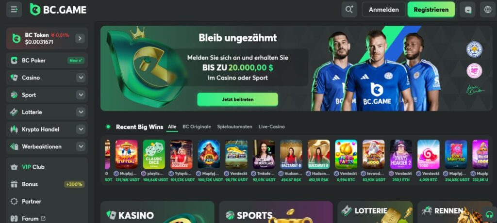 BC.Game ist ein bekannter Name in der Welt der Krypto-Casinos. Als einer der Spezialisten bietet BC.Game neuen Kunden die Chance, für die ersten Einzahlungen im Casino einen Bonus von bis zu 20.000 USD zu erhalten. Auf der deutschsprachigen Plattform, auf die per VPN zugegriffen werden kann, stehen ein Dutzend Kryptowährungen zur Verfügung. Sie können Kryptowährungen auch direkt auf der Plattform erwerben.