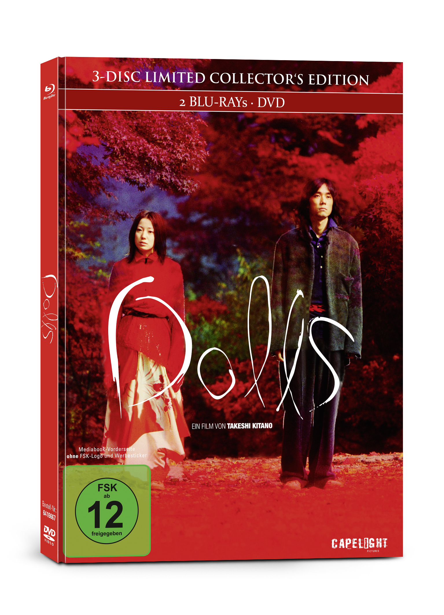 Der zweite Film der im Mediabook erscheint ist Dolls aus dem Jahr 2002. Hier gibt es neben dem Film auf Blu-ray und DVD auch wieder eine Bonus Blu-ray mit dem Film Takeshis‘.