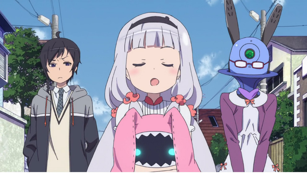Die Animation hat sich natürlich nicht viel geändert, auch wenn man bei „A-1 Pictures“ wohl meist an „Sword Art Online“ denkt. So sieht „Sekai Seifuku“ doch sehr anders aus. Die Figuren und die Welt ist immer bunt, wie schon angesprochen kann dies zu der Parodie des Superhelden für Kinder gehören. Doch hier ist natürlich nicht alles so normal. Die Welt wirkt nicht so realistisch, wie in anderen Animes, auch wenn es sehr viele Details gibt. Dennoch wirkt alles immer etwas comic-artiger, was aber natürlich eindeutig an der Handlung liegt.