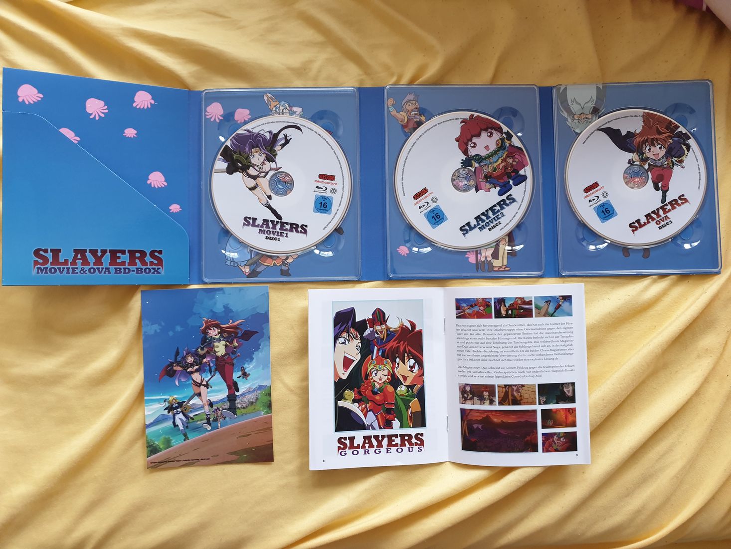 Wie ihr es bereits kennt: Die physische Umsetzung des Produkts ist natürlich wieder kein wertungsrelevanter Punkt unserer Kritik, soll euch aber ein Bild vom dem vermitteln, was ihr als Käufer erwarten könnt. Die folgende Beschreibung und die Bilder beziehen sich dabei auf die Blu-Ray-Version der Slayers – Movies & OVAs Gesamtausgabe.