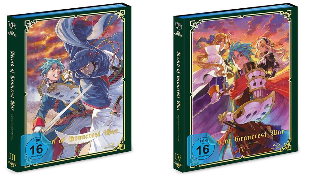 Nachdem die Cover-Designs der ersten beiden Volumes der Serie „Record of Grancrest War“ ja bereits eine ganze Weile bekannt waren und die Discs auch mittlerweile im Handel verfügbar sind, enthüllte peppermint anime nun auch die Designs der finalen beiden Volumes 3 und 4.