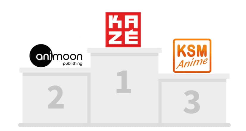 Eins vorweg: Insgesamt war das Rennen um den Sieg auch in diesem Jahr wieder extrem knapp – ein Trend, der sich bereits in den Vorjahren so abgezeichnet hat. Das neue Abstimmungsformat hat aber auch gezeigt, dass im Prinzip alle Publisher ganz gut bei euch wegkommen, denn die Punkte reichen diesmal von 5,3 bis 7,9, was bedeutet, dass eigentlich alle Unternehmen mittlere bis gute/sehr gute Ergebnisse erreicht haben. Doch durchsetzen konnte sich in diesem Jahr KAZÉ mit 7,9 Punkten! Damit haben wir im dritten Jahr in Folge einen neuen Sieger, was ebenfalls unterstreicht, wie eng das Feld – gerade an der Spitze – zusammen liegt. Die Plätze 2 und 3 entfallen mit 7,7 bzw. 7,6 Punkten übrigens auf AniMoon Publishing und KSM Anime. Die weiteren Publisher folgen dahinter.