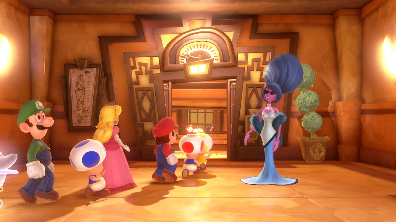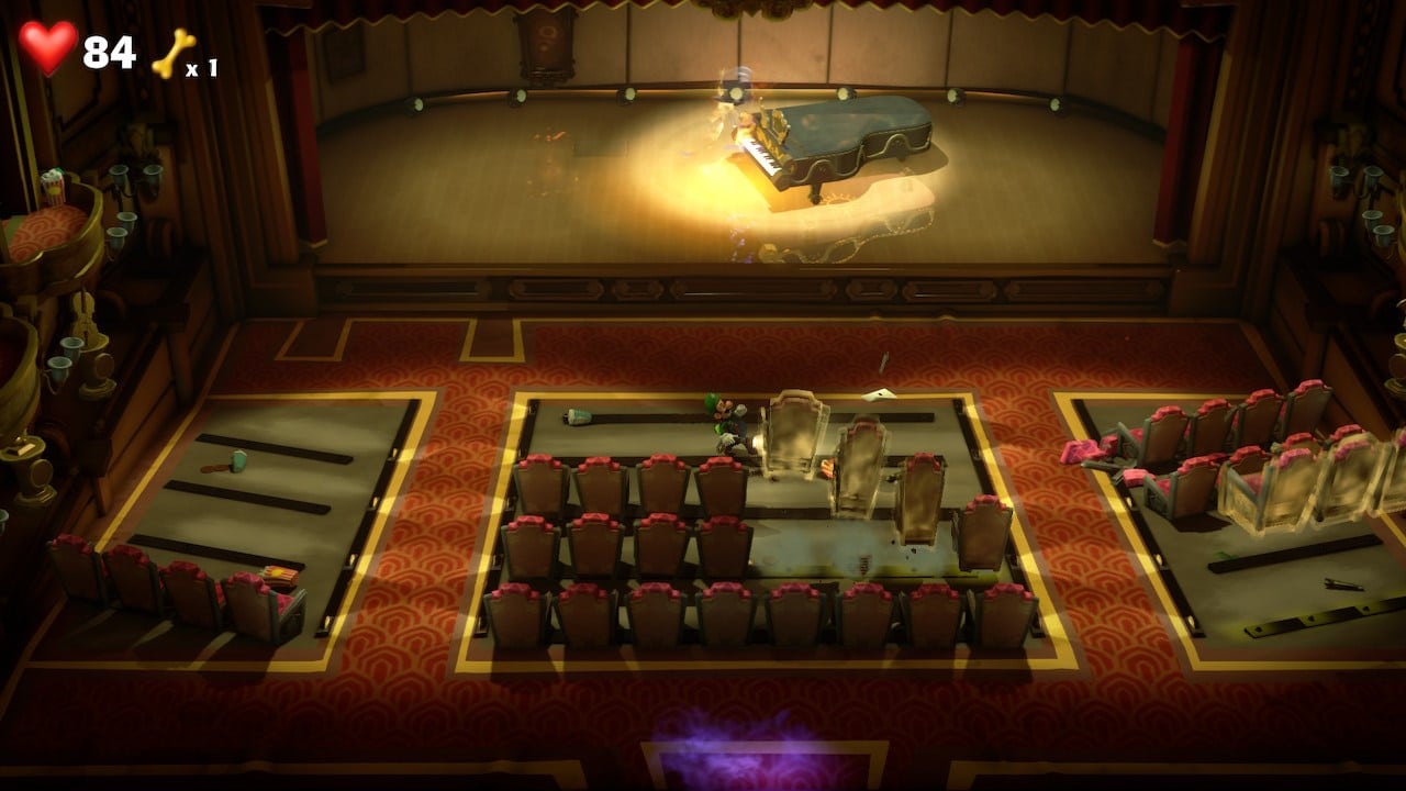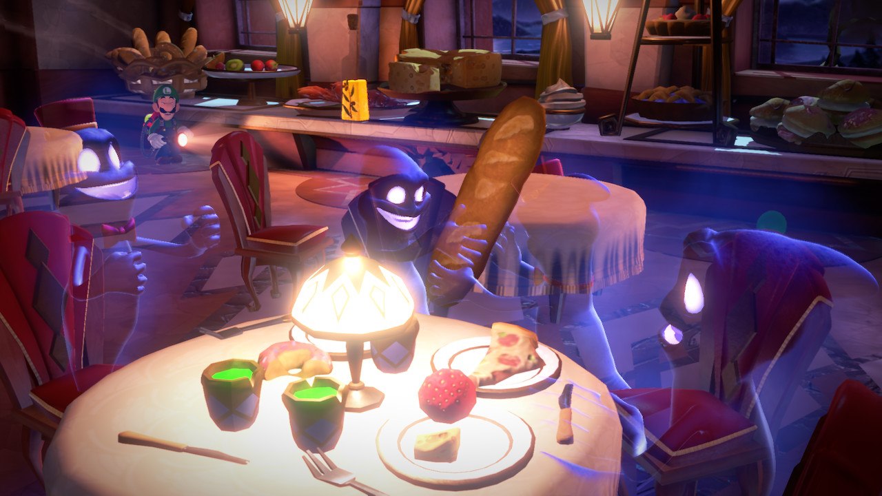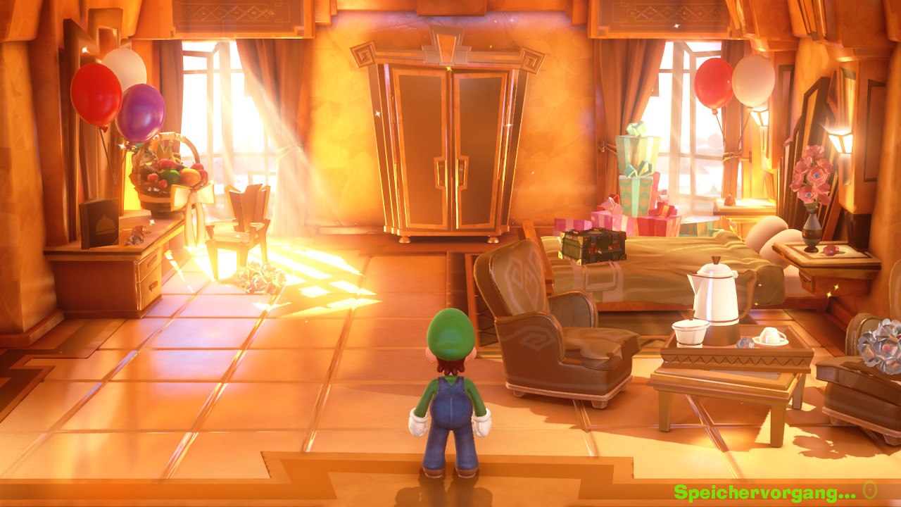 Interessant ist auch, dass ihr immer einen treuen Begleiter bei euch habt. Dieser ist ein Geister-Hund, der euch öfters mal hilft oder auch für die ein oder andere lustige Szene sorgt. Zusätzlich hilft das Spiel euch automatisch, wenn ihr mal nicht weiterkommt. Wenn ihr beispielsweise etwas länger vor einem Hindernis steht und nicht herausfindet, wie ihr dieses überwinden, werden euch Tipps gegeben. Dies hilft manchmal enorm, da die Rätsel oft nicht ganz so einfach sind. Fans von Zelda werden diesen Rätselspaß in Luigi’s Mansion 3 bestimmt lieben. Übrigens geschieht das Speichern auch automatisch, nachdem ihr durch eine Tür gelaufen seid, was relativ praktisch ist.