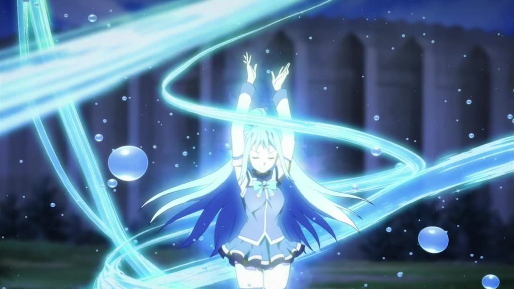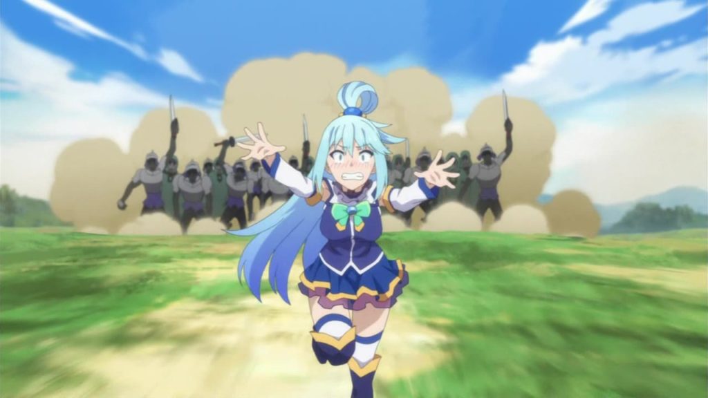 Wie praktisch, dass unsere Truppe mit Aqua ja die Göttin des Wassers auf ihrer Seite hat. Diese übertreibt es allerdings ein wenig und ruft eine große Flut herbei, die nicht nur den Dullahan schwächt, sondern auch die Stadt enorm in Mitleidenschaft zieht. Anschließend gelingt es Kazuma aber dem verdutzten Dullahan den Kopf zu stehlen, so dass Aqua nun leichtes Spiel hat und ihn besiegen kann. Dafür gibt es eine enorme Extra-Belohnung und die Freunde wähnen sich schon in unverhofftem Reichtum. Dumm nur, dass sie auch für die Kosten der Stadtreparatur aufkommen müssen, was sie gesamthaft mit neuen hohen Schulden zurücklässt.