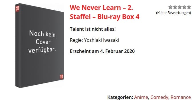 Wie nun ein entsprechender Produkteintrag auf der Webseite von Publisher KAZÉ vermuten lässt, wird man die Anime-Adaption von Taishi Tsutsuis Manga „We Never Learn“ offenbar auf Disc veröffentlichen.