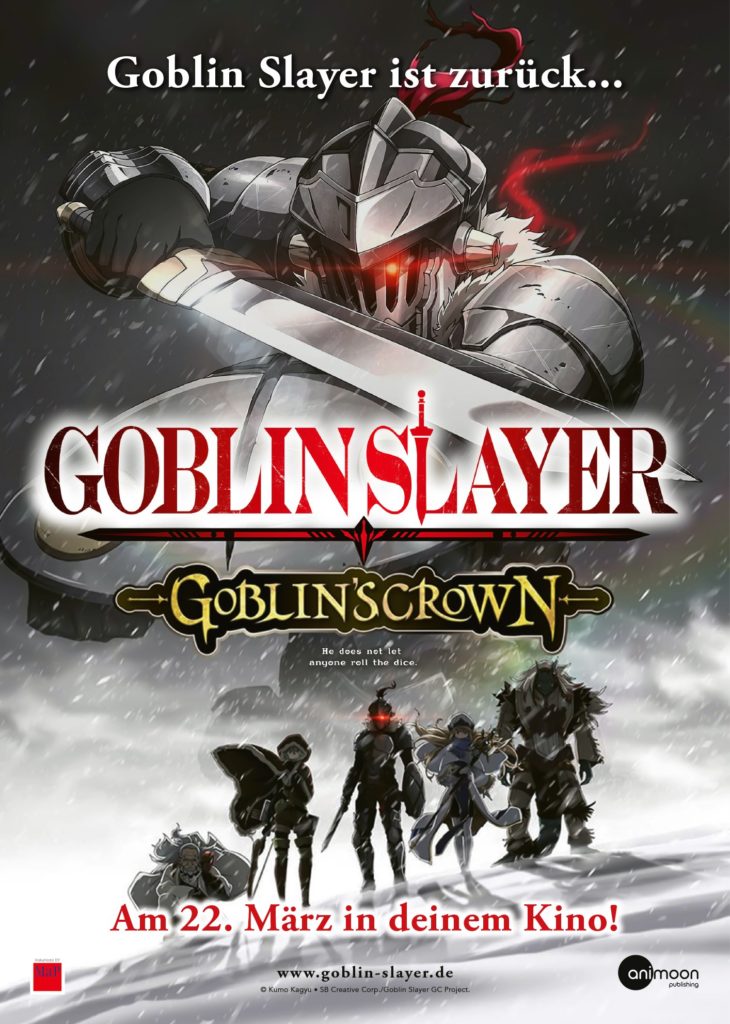 Wie AniMoon Publishing bekannt gab, konnte man sich die Lizenz des Films „Goblin Slayer: Goblin’s Crown“ sichern und wird den Film am 22. März 2020 zeigen. Die Kinos, die den Film (OmU) zeigen werden, stehen derweil noch nicht fest und werden erst noch genannt. Ein Visual hat der Publisher allerdings schon mitgeliefert.
