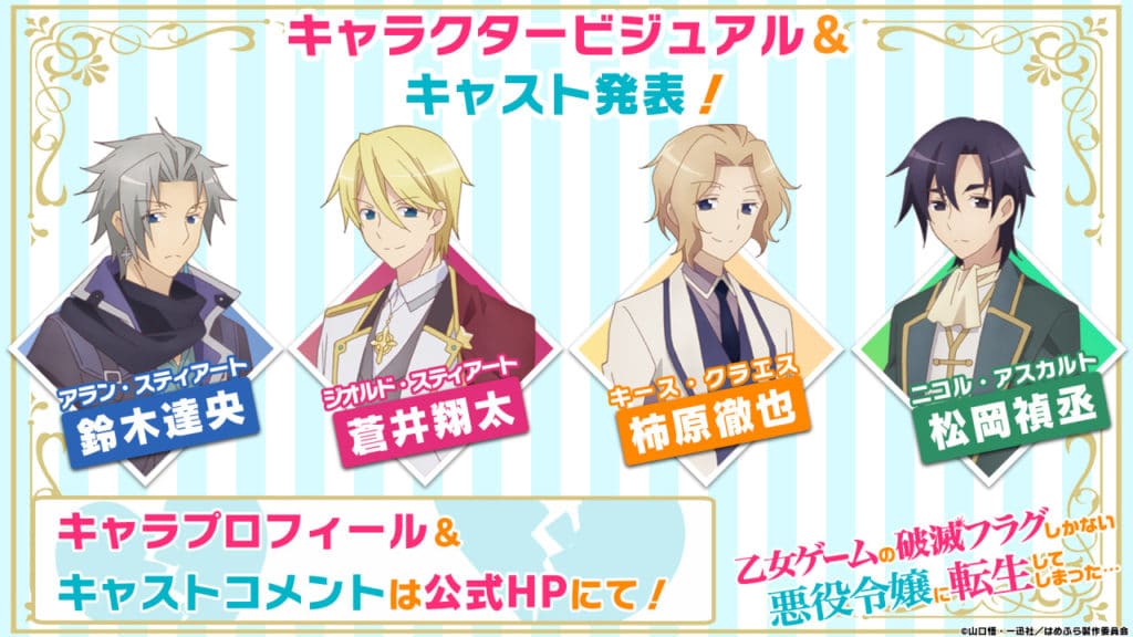 Auf der offiziellen Webseite der Anime-Adaption der Light Novel „My Next Life as a Villainess: All Routes Lead to Doom!“ (jap. Otome Game no Hametsu Flag Shika Nai Akuyaku Reijō ni Tensei Shiteshimatta...) von Satoru Yamaguchi und Nami Hidaka wurde nun ein neues Promo-Video zur Serie veröffentlicht,.