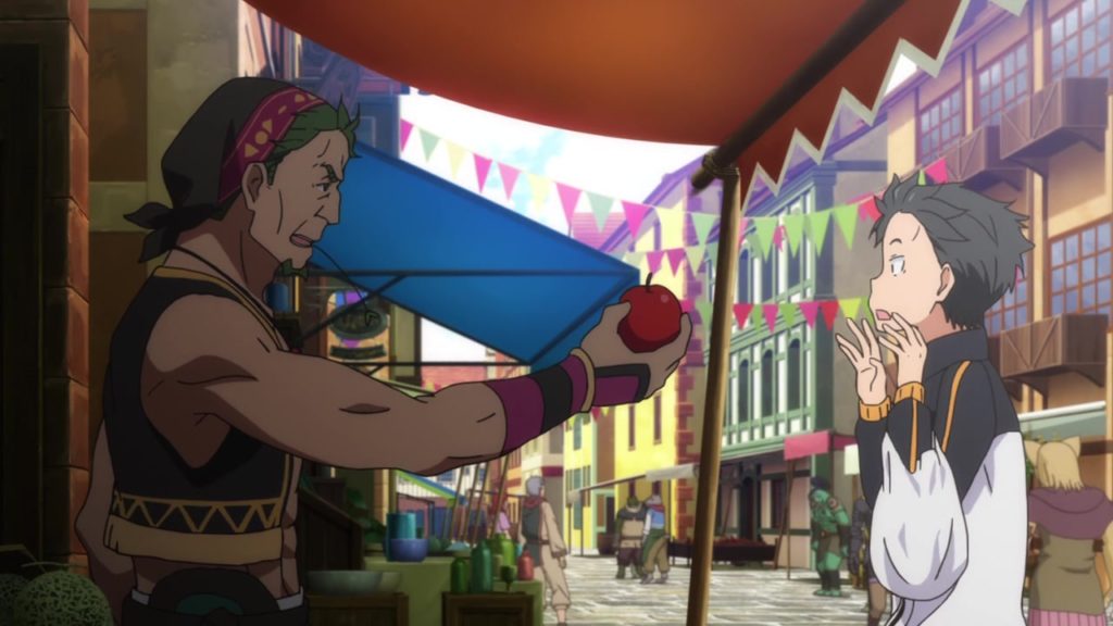 Gerade noch befindet sich der junge Subaru beim Einkaufen in einem Convenience Store, doch im nächsten Augenblick öffnet er die Augen in einer völlig anderen Welt. Überrumpelt von diesen neuen Eindrücken findet er sich in einer dunklen Seitengasse schnell mir nichts, dir nichts Auge in Auge mit einer dreiköpfigen Bande Verbrecher wieder. Während er es mit den Dreien zu tun bekommt, rauscht aber auch noch ein junges Mädchen an der Szene vorbei, die von einem weiteren Mädchen verfolgt wird. Dieses stellt die Verfolgung jedoch ein, um zunächst Subaru zu helfen, was ihr mit ihrer Eismagie auch gelingt.
