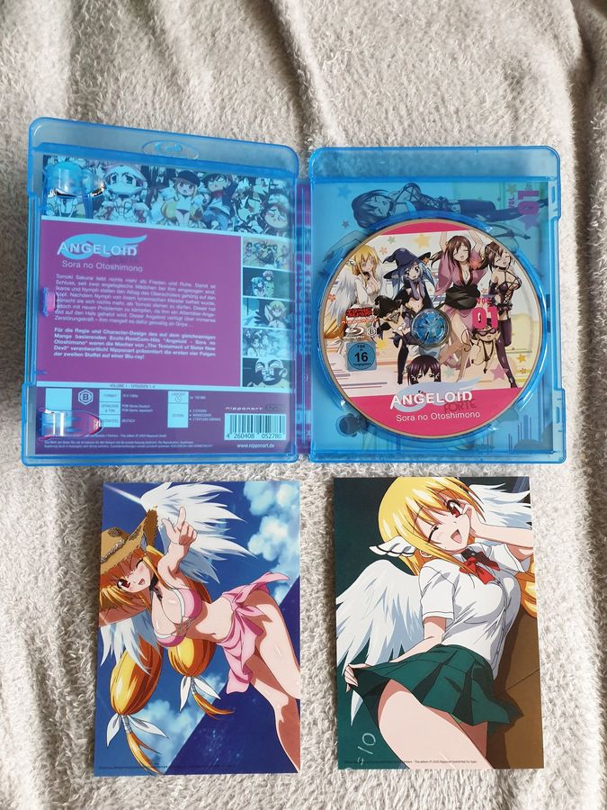Wie ihr es bereits von uns kennt kennt: Die physische Umsetzung des Produkts ist natürlich wieder kein wertungsrelevanter Punkt unserer Kritik, soll euch aber ein Bild vom dem vermitteln, was ihr als Käufer erwarten könnt. Die folgende Beschreibung und die Bilder beziehen sich dabei auf die Blu-Ray-Version von „Angeloid – Sora no Otoshimono Forte“ Vol. 1.