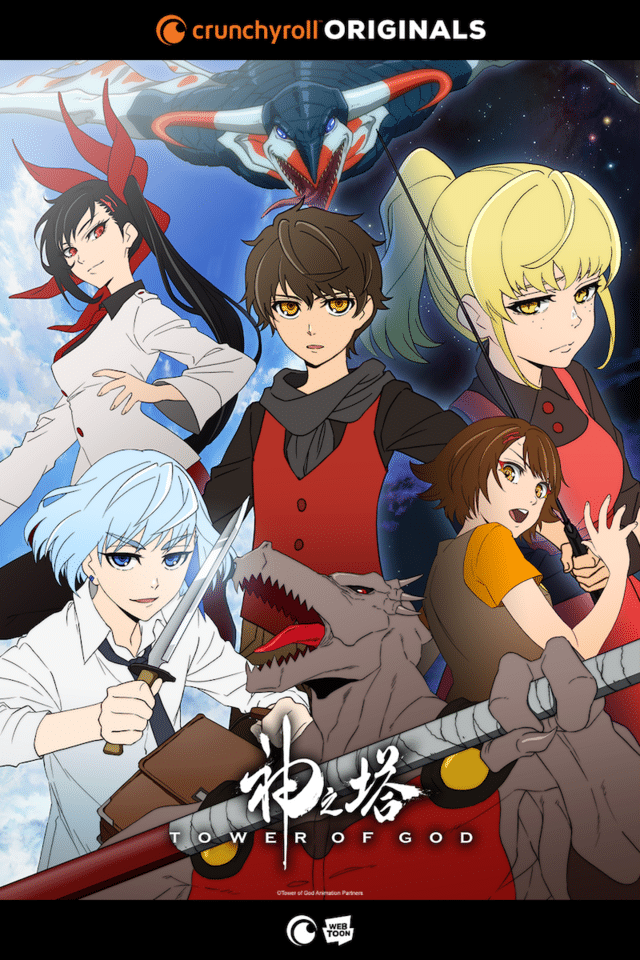 Eine Produktion von Crunchyroll und WEBTOON, basierend auf der Comicreihe „Tower of God“, welche von SIU kreiert und von WEBTOON veröffentlicht wird. In dieser Dark-Fantasy-Serie muss sich ein junger Mann einer Reihe mysteriöser Herausforderungen und schrecklichen Dingen stellen, während er Freundschaften schließt und die Gesetze enthüllt, denen dieser „Turm“ unterliegt, damit er die einzige Freundin retten kann, die er jemals hatte. Die Animation wird von TELECOM ANIMATION FILM produziert, während SOLA ENTERTAINMENT das Production management übernimmt. Ab Frühling 2020 auf Crunchyroll.