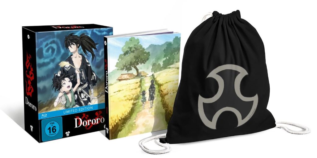 „Dororo“ soll auf insgesamt vier Volumes mit jeweils sechs Episoden als limitierte Mediabook-Edition erscheinen. Volume 1 ist dabei ab dem heutigen 27. März 2020 im Handel verfügbar. Dem ersten Volume liegt neben dem Sammelschuber als weiteres Extra ein exklusiver Daigo-Beutel bei.
