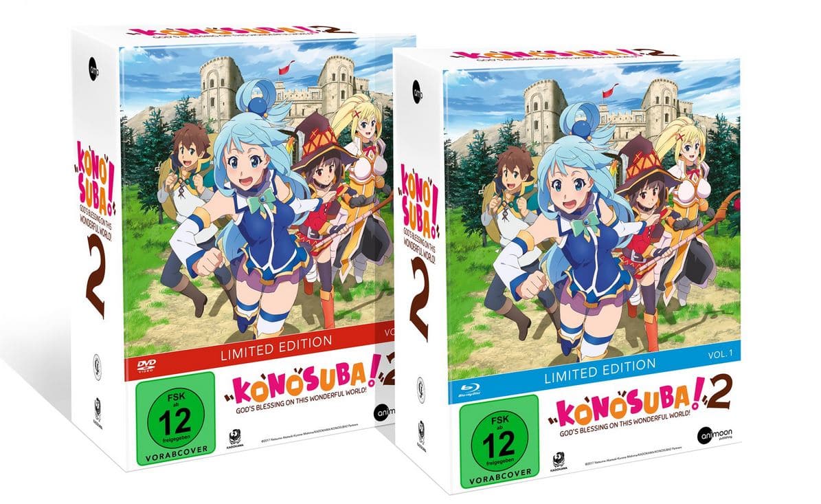 Das erste Volume der zweiten Staffel von „KonoSuba“ wird die ersten vier Episoden mit deutscher Synchronisation sowie mit japanischem Originalton mit deutschen Untertiteln enthalten und nach einer Verschiebung voraussichtlich am 22. Mai 2020 erscheinen. Dabei ist – wie bei der ersten Staffel – eine Veröffentlichung als Limited Mediabook Edition geplant. Dem ersten Volume werden zudem ein Sammelschuber sowie bisher noch nicht bekannte exklusive Extras beiliegen.