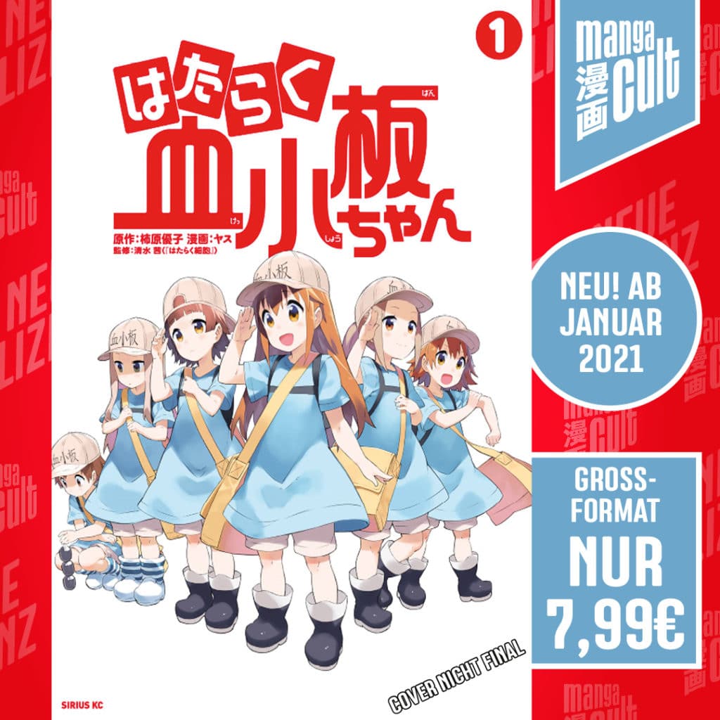 Dabei handelt es sich diesmal um die Mangareihe „An die Arbeit, Blutplättchen!“ (jap. Hataraku Kesshōban-chan) von Akane Shimizu, Yuuko Kakihara und Yasu. Los geht es mit dem ersten Band voraussichtlich im Januar 2021. Dabei erscheint der Manga im Großformat zu einem Preis von 7,99 Euro pro Band.