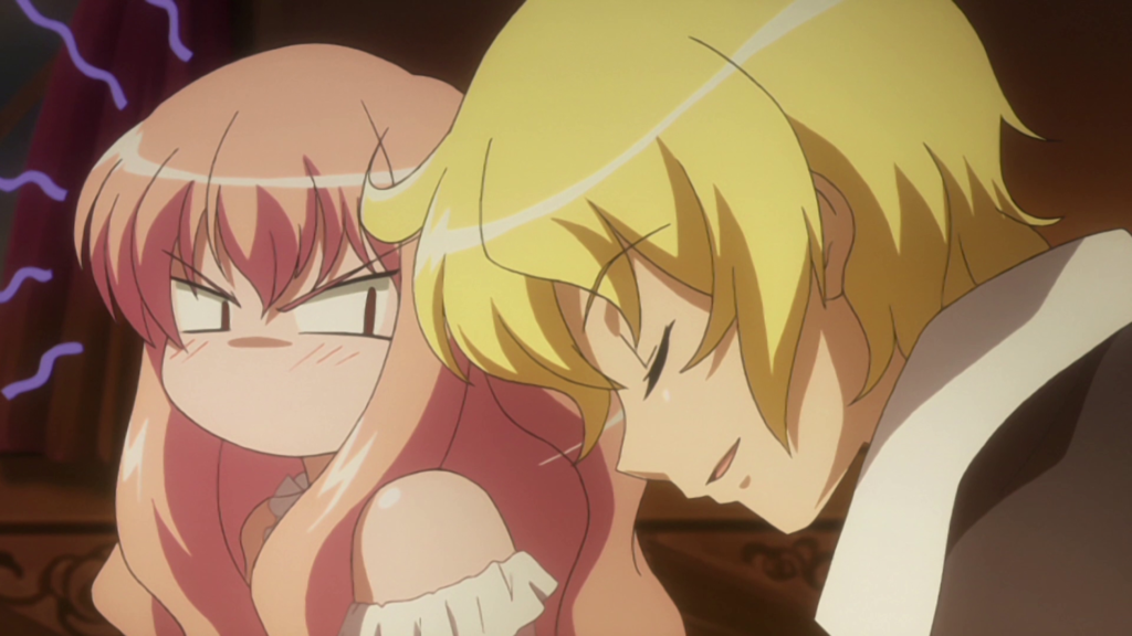 Verkehrte Welt: Louise entwickelt plötzlich Gefühle für ihren untergebenen Schutzgeist und hängt wie benebelt an Saitos Lippen, anstatt ihn wie gewöhnlich zu bestrafen. Das kann doch nicht mit rechten Dingen zugehen!
