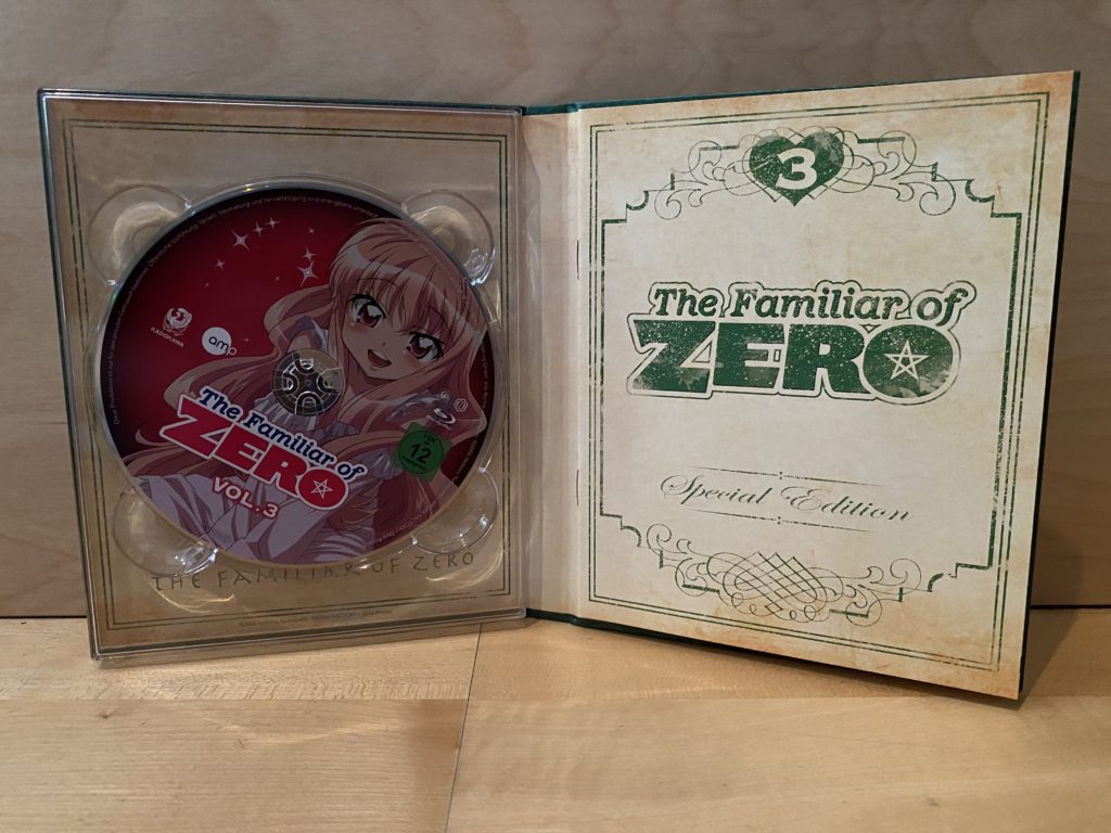 Wie aus unseren weiteren Reviews gewohnt, hat die physische Umsetzung des Produkts auch diesmal keinen Einfluss auf unsere Gesamtwertung der Rezension. Dennoch stellt der nachfolgende Überblick euch als potenziellen Käufern hoffentlich eine kleine Entscheidungshilfe dar. Alle nachfolgenden Details und Bilder beziehen sich dabei auf die limitierte Mediabook-Edition des dritten Volumes von „Familiar of Zero“ in der Blu-Ray-Variante.