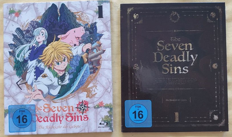 Wie ihr es bereits kennt: Die physische Umsetzung des Produkts ist natürlich wieder kein wertungsrelevanter Punkt unserer Kritik, soll euch aber ein Bild vom dem vermitteln, was ihr als Käufer erwarten könnt. Die folgende Beschreibung und die Bilder beziehen sich dabei auf die Blu-Ray-Version von „The Seven Deadly Sins – Die Rückkehr der Gebote“ Vol. 1.
