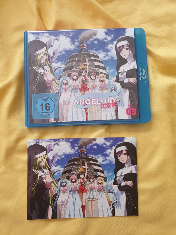 Wie ihr es bereits von uns kennt kennt: Die physische Umsetzung des Produkts ist natürlich wieder kein wertungsrelevanter Punkt unserer Kritik, soll euch aber ein Bild vom dem vermitteln, was ihr als Käufer erwarten könnt. Die folgende Beschreibung und die Bilder beziehen sich dabei auf die Blu-Ray-Version von „Angeloid – Sora no Otoshimono Forte“ Vol. 3.