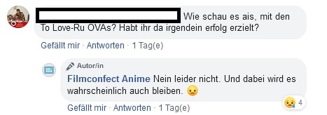 Ursprünglich gab FilmConfect Anime bereits im November 2018 bekannt, dass man die OVAs zur Serie hierzulande veröffentlichen möchte. Zwischenzeitlich waren diese sogar als spezielle limitierte Edition mit Sammelschuber und Dakimakura Kissenbezug bereits vorbestellbar. Nun sieht es jedoch so aus, als würden es die Zusatzepisoden doch nicht in deutsche Gefilde schaffen. Auf Nachfrage eines Nutzers gab FilmConfect Anime nämlich nun bekannt, dass man dahingehend bisher keine Erfolge erzielen konnte, was wahrscheinlich auch so bleiben wird: