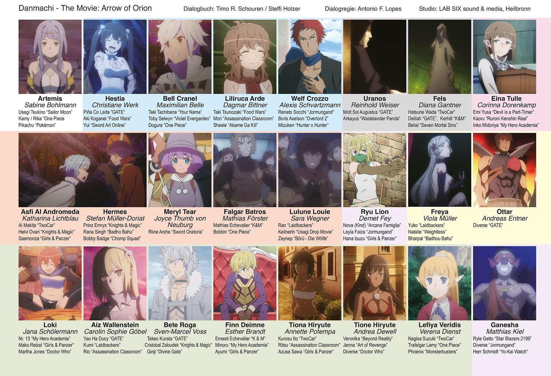 Nachdem man zuvor bereits Sabine Bohlmann als deutsche Stimme der Göttin Artemis vorgestellt hatte, enthüllte Publisher Anime House nun den kompletten deutschen Sprechercast des Films „DanMachi: Arrow of the Orion“.