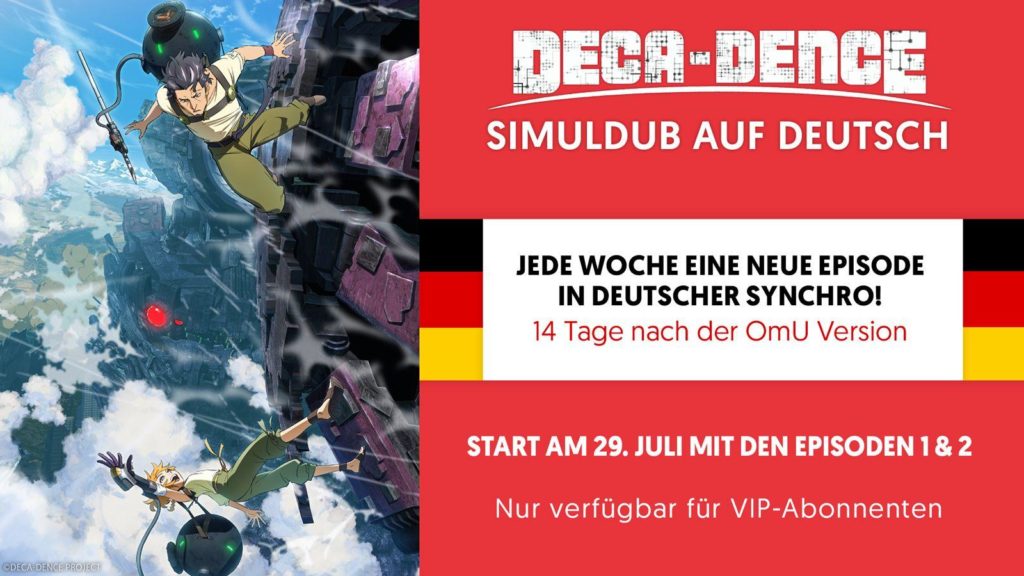 Demnach werden bereits am 29.07 die ersten beiden Episoden mit deutscher Synchronisation veröffentlicht. Anschließend werden neue Folgen (immer 14 Tage nach Erstausstrahlung) erscheinen. Der Simuldub ist VIP-Abonnenten vorbehalten.