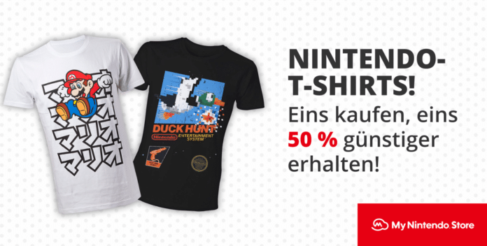 Unter den T-Shirts findet ihr jede Menge Nintendo-Klassiker, wie z.B. T-Shirts mit Zelda, Mario, Yoshi, Splatoon oder einem NES-Controller. Die Aktion ist im My Nintendo Store gültig und gilt nur solange der Vorrat reicht. Auf der Webseite findet sich zudem folgende Information: „Dieser Artikel ist Teil einer Sonderaktion: Beim Kauf von zwei T-Shirts erhältst du eines 50 % günstiger. Der Rabatt wird auf den günstigeren von beiden Artikeln gewährt. Die Aktion läuft, solange der Vorrat reicht.“ Beachtet dementsprechend, dass der Rabatt auf das günstigere T-Shirt gewährt wird.