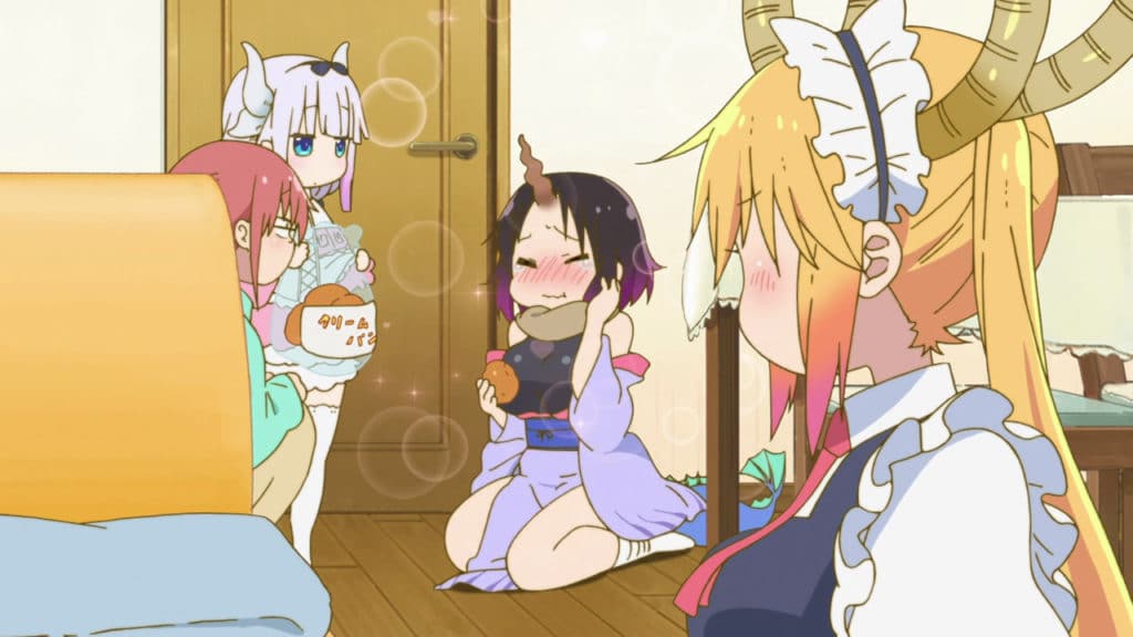 Tohru, Kobayashi und Kanna sitzen eines Abends gemeinsam beim Essen. Plötzlich, aus dem Nichts, explodiert etwas in ihr Wohnzimmer hinein. Oder besser gesagt, jemand explodiert in ihr Wohnzimmer, denn plötzlich taucht der Drache Elma, der der entgegengesetzten Fraktion Drache wie Tohru angehört, auf. Sie ist in die Welt der Menschen gekommen, um Tohru wieder mitzunehmen und sie ihrer gerechten Strafe zuzuführen. Da das Tohru jedoch nicht mit sich machen lässt, beginnt auch Elma in der Menschenwelt zu leben und arbeitet sogar im selben Unternehmen wie Kobayashi.