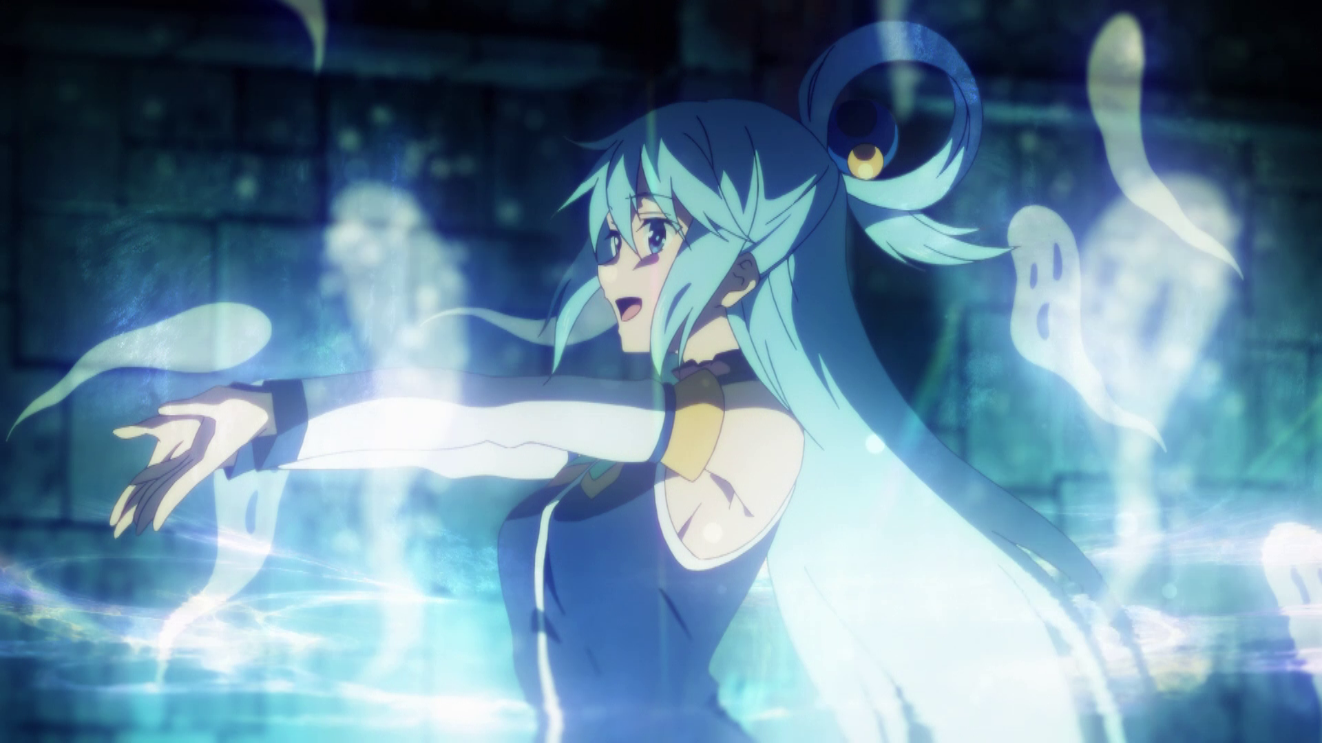 Denkt man an die Animationsqualität, gibt es ja durchaus einige Animes, die als visuelle Offenbarung bezeichnet werden können – und „KonoSuba“ gehört definitiv nicht dazu. Oft kommen die Charaktere und die Welt recht detailarm daher. Der Fokus auf den komödialen Anteil fordert dem Anime zwar keine große Leistung hinsichtlich der Animationsqualität ab, doch selbst in Alltagsszenen fällt auf, dass hier Luft nach oben gewesen wäre.
