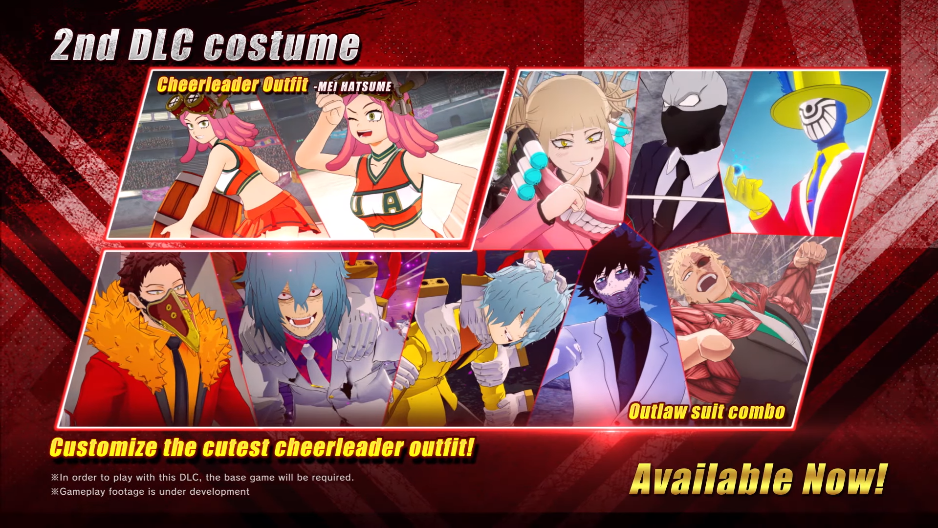 Nach Hawks wurde nun Mei Hatsume als kostenpflichtiger DLC-Charakter präsentiert. Ebenso wurde das Costume Pack „Outlaw Suits“ gezeigt, welches mit Mei Hatsume ab sofort erhältlich ist.