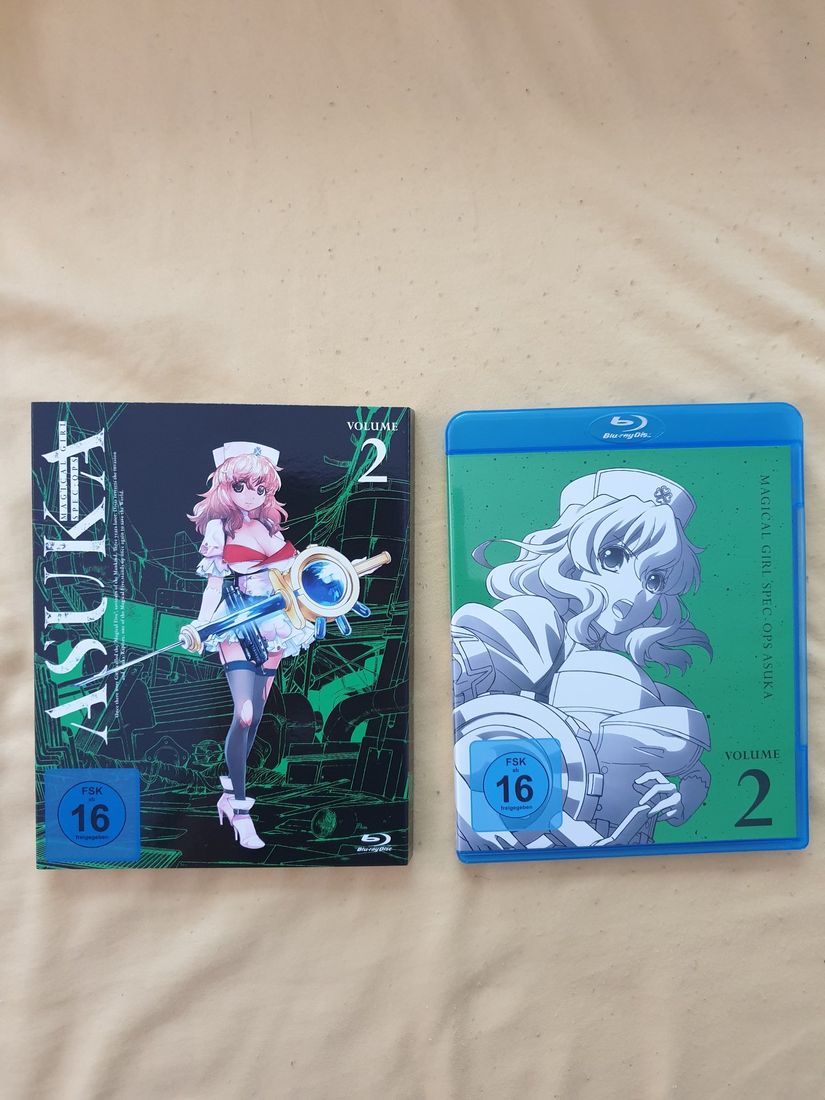 Wie ihr es bereits kennt: Die physische Umsetzung des Produkts ist natürlich wieder kein wertungsrelevanter Punkt unserer Kritik, soll euch aber ein Bild vom dem vermitteln, was ihr als Käufer erwarten könnt. Die folgende Beschreibung und die Bilder beziehen sich dabei auf die Blu-Ray-Version von „Magical Girl Spec-Ops Asuka“ Volume 2.