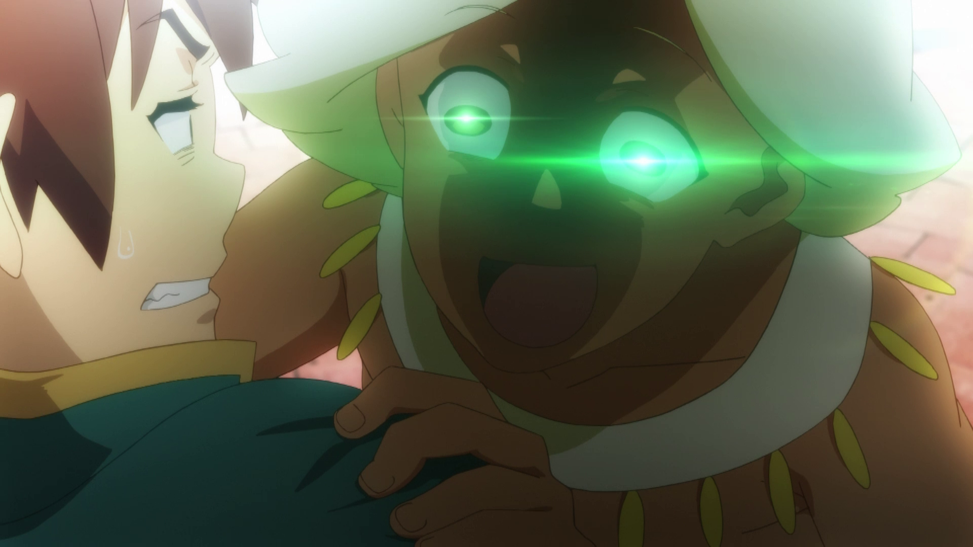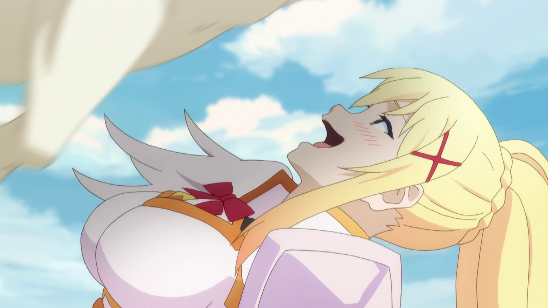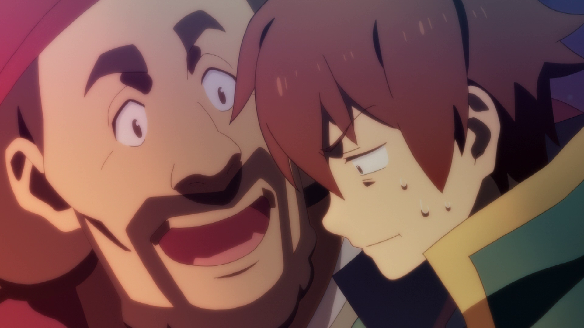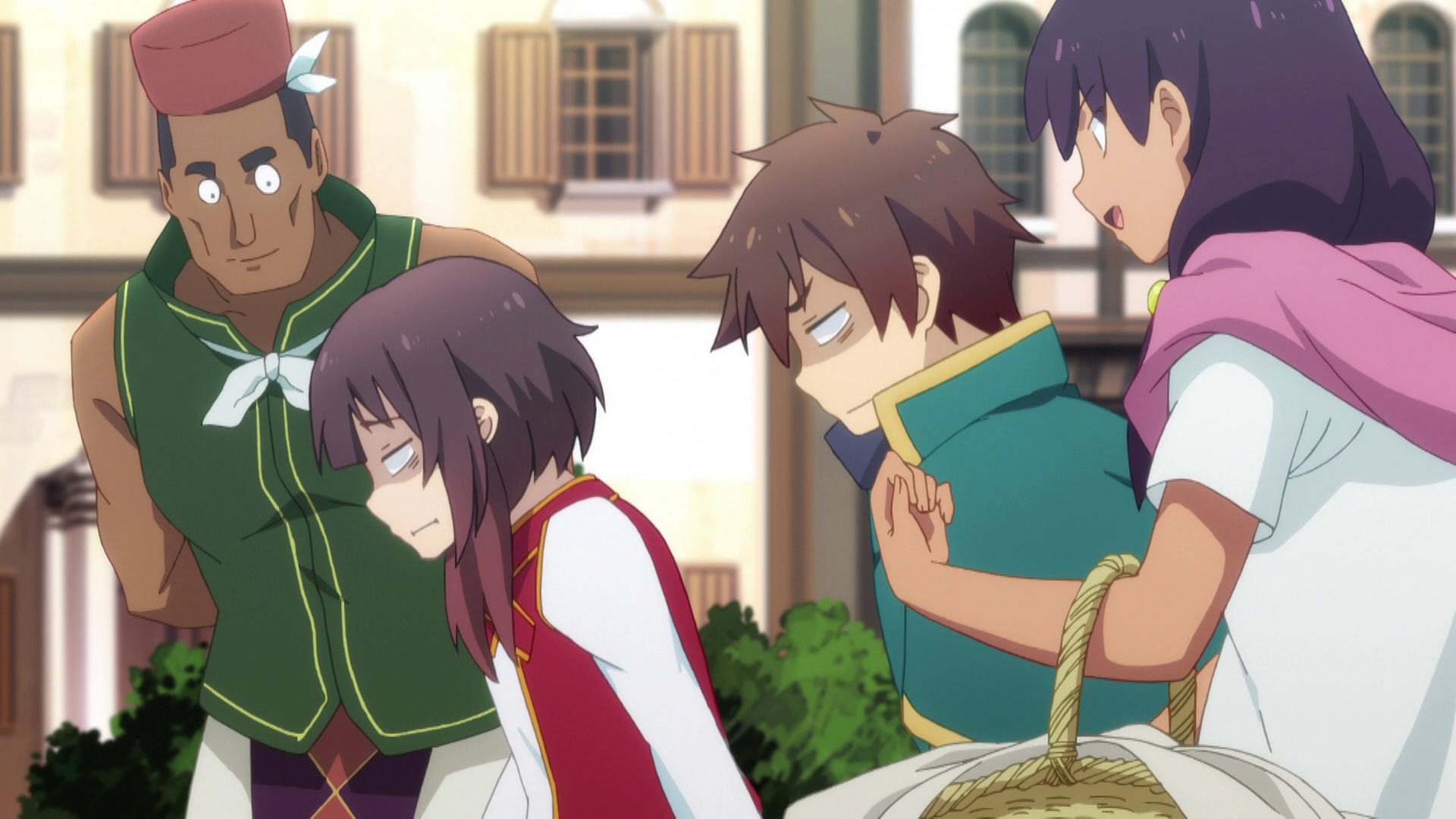 Dumm nur, dass die Rüstung von Darkness zu einem Teil aus Adamantit besteht, einem der härtesten Materialien überhaupt, was die Straußenfalken direkt auf ihre Spur führt. Als sich die Abenteurer, die angeheuert wurden, um die Kolonne zu beschützen, der Sache annehmen möchten, bieten Kazuma und Co an, ebenfalls zu helfen. Kazuma erhofft sich so verschleiern zu können, dass Darkness überhaupt erst für diesen Schlamassel verantwortlich ist. Mit einer von ihm erdachten Taktik gelingt es dann tatsächlich, die Vogelhorde in eine Höhle zu lotsen, wo Megumin die Sache mit ihrer mächtigen Explosionsmagie beendet. Die Mitglieder der Wagenkolonne sind ganz begeistert von unseren Freunden und danken ihnen überschwänglich, was Kazuma die Schamesröte ins Gesicht treibt, der weiterhin für sich behält, dass sie auch der Auslöser der Misere waren.