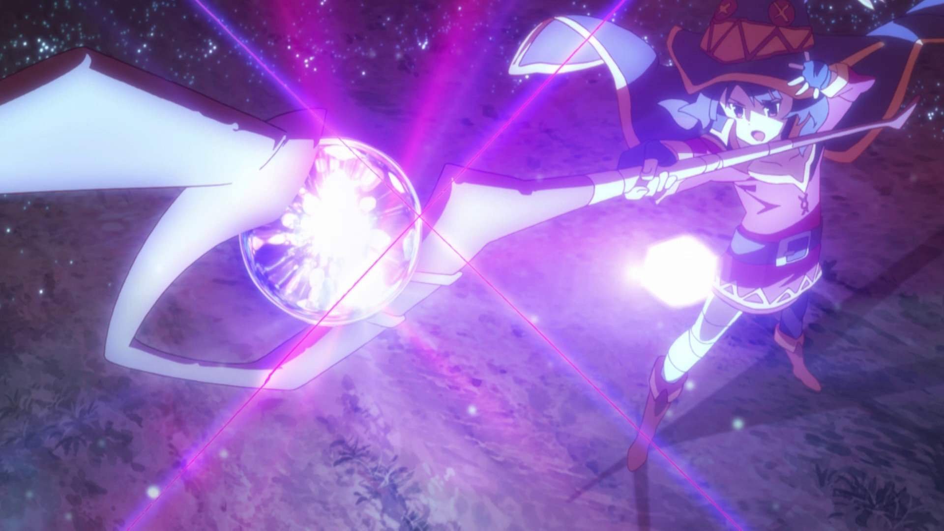 Doch auch bei den Animationen ergeben sich bis zum Ende der Staffel keine großen Änderungen mehr. Das bedeutet, dass diese oft zu minimalistisch ausfallen und ein wenig mehr Detailreichtum an einigen Stellen absolut wünschenswert gewesen wären. Das gilt für Alltagsszenen und actionreichere Abschnitte gleichermaßen, wobei bei letzterer Kategorie immer wieder auch mal Szenen dabei sind, die animationstechnisch positiv herausstechen, beispielsweise bei Megumins Explosionen oder Aquas Spezialtechniken. Das kann über die generelle Schwäche in diesem Bereich aber nicht hinwegtäuschen.