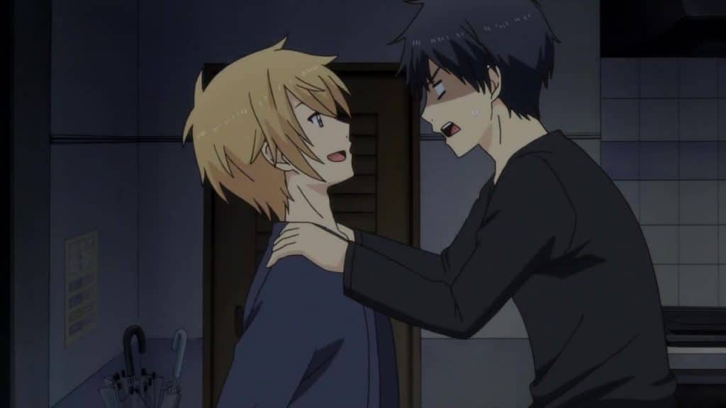 Während des Lernens kommt es dann immer wieder zu etwas brenzligen Situationen als An Aratas Kalender mit Eintragungen verschiedener Vorstellungsgespräche findet oder als Kazuomi plötzlich angerufen wird und den Anruf auf Aratas Balkon entgegen nehmen möchte, wo dieser aber mehrere Säcke mit leeren Bierdosen versteckt hat. Irgendwie gelingt es Arata dabei gerade so, das alles zu überspielen und sein Geheimnis zu bewahren, doch Kazuomi muss plötzlich kurzfristig arbeiten und lässt ihn alleine mit der Oberschülerin An in der Wohnung zurück, was Arata gar nicht lustig findet.
