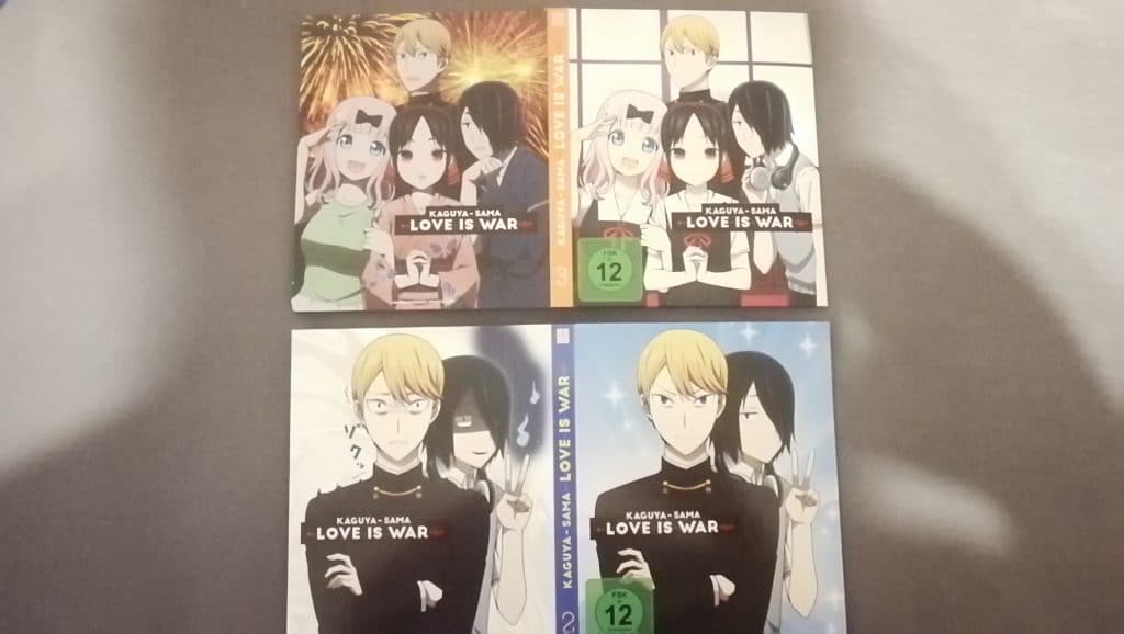 Wie ihr es von uns schon kennt, hat die physische Umsetzung des Produkts keinen Einfluss auf die Gesamtwertung des Reviews. Dieser Abschnitt dient mehr dazu, euch ein Bild von dem zu vermitteln, was euch als Käufer erwartet. Dabei beziehen sich alle Beschreibungen auf die Blu-Ray-Fassungen der Volumes 2 und 3 von „Kaguya-Sama: Love is War“.