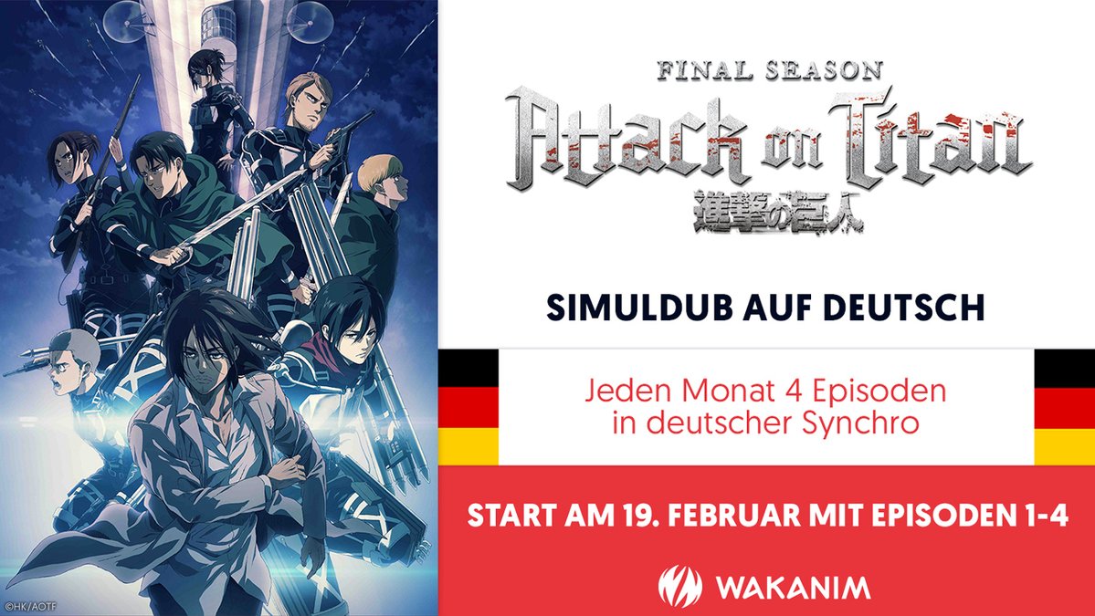 Wie nun die Verantwortlichen von WAKANIM kürzlich bekannt gaben, erscheint die vierte Staffel von „Attack on Titan“ im Simuldub.