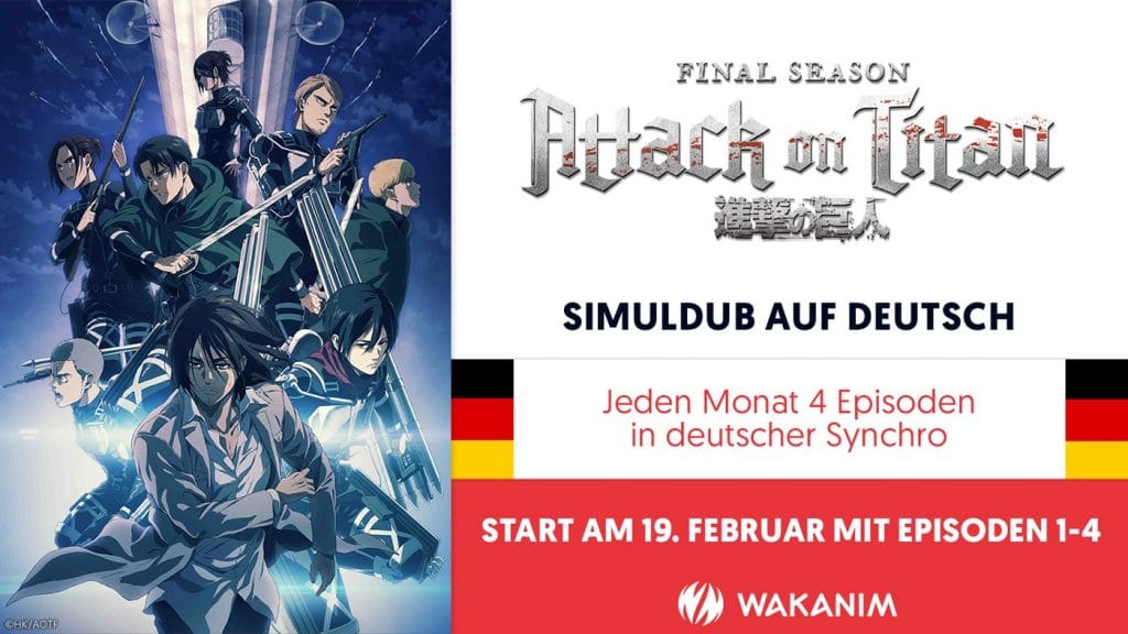 Nachdem es nun endlich soweit ist und am heutigen Freitag um 19 Uhr die Simuldub-Version zur vierten Staffel von „Attack on Titan“ bei Streaming-Anbieter WAKANIM startet, wurden – passend dazu – vorab die deutschen Stimmen zu den ersten vier Episoden des Titanen-Epos enthüllt.