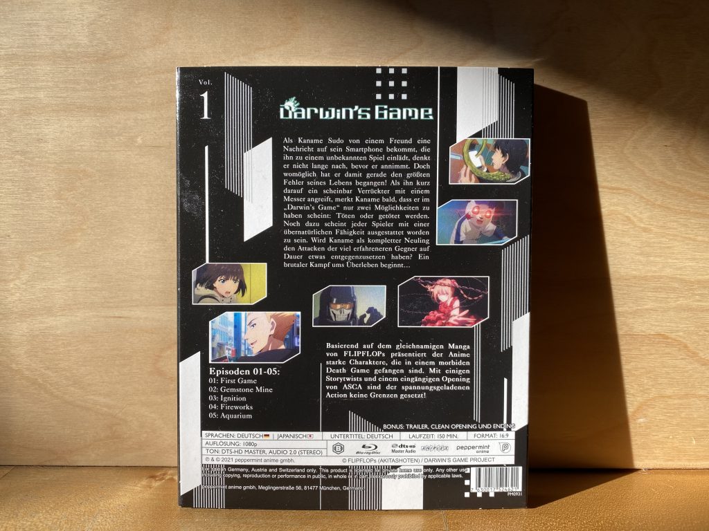 Mitte Januar veröffentlichte peppermint anime die ersten fünf Episoden der Serie „Darwin’s Game“ auf Disc. Natürlich haben wir für euch in den Titel reingeschaut und verraten euch in unserer nachfolgenden Review, was ihr von Kanames Start in das verrückte Survival Game erwarten dürft.