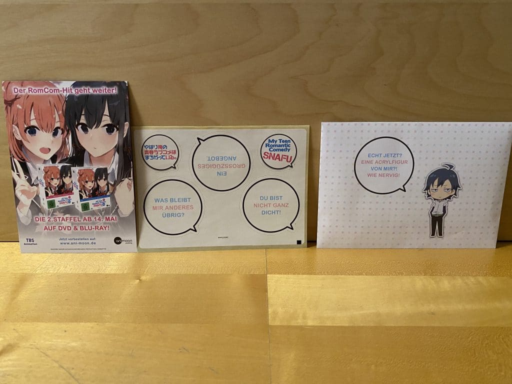 Als physische Extras sind neben dem integrierten Booklet diesmal eine Chibi-Acrylfigur von Protagonist Hachiman sowie ein weiterer Stickerbogen dabei, der im Booklet genutzt werden kann. Digital sind das Clean Opening und Ending mit an Bord.